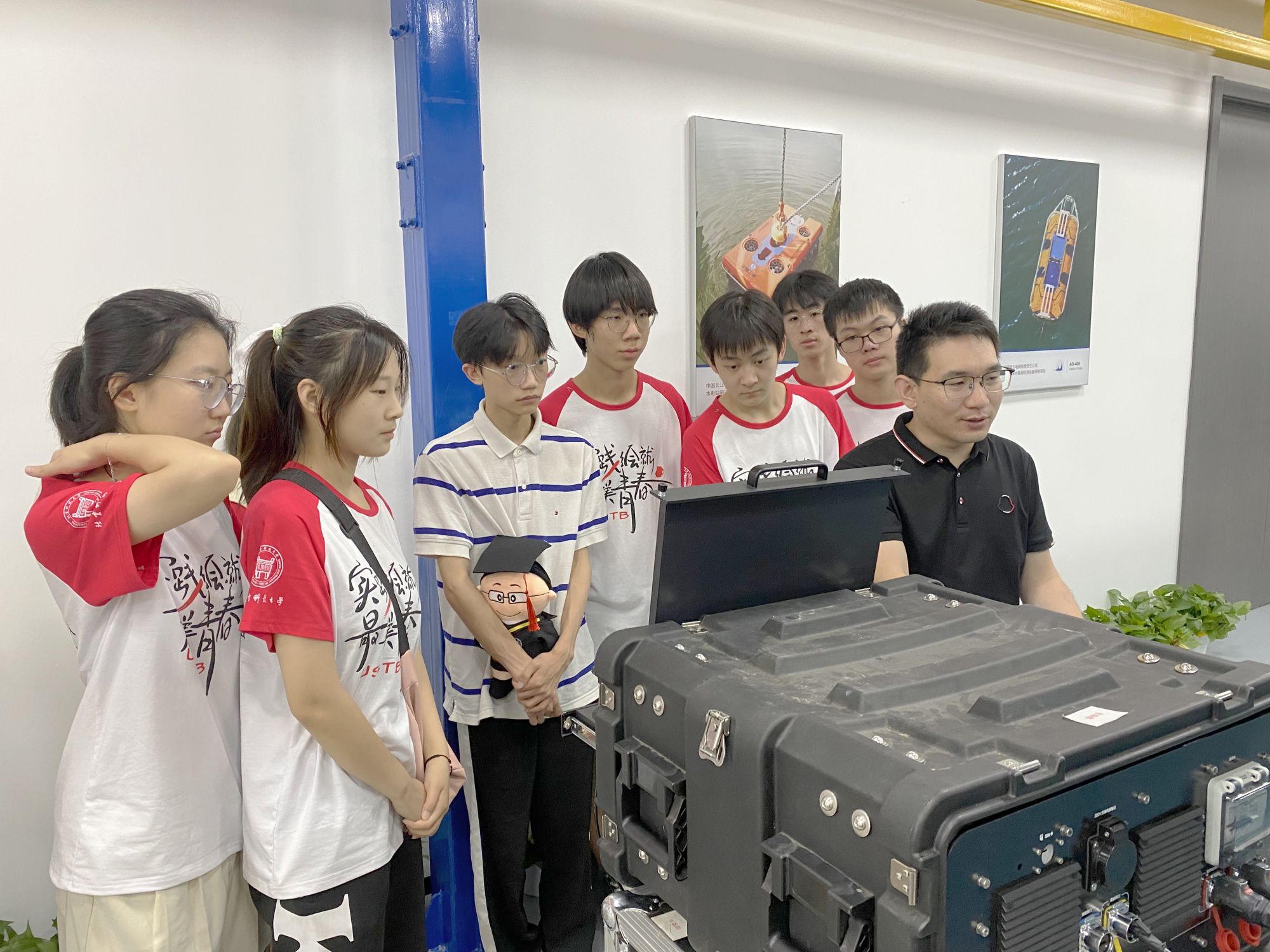 隨后,講解人詳細介紹了公司的產品,重點介紹了不同型號水下機器人的特點、功能和應用場景。學生們認真聆聽,對水下機器人的多樣性以及在市政檢測、海洋勘測、水下救援等領域的廣泛應用有了更深入的了解。