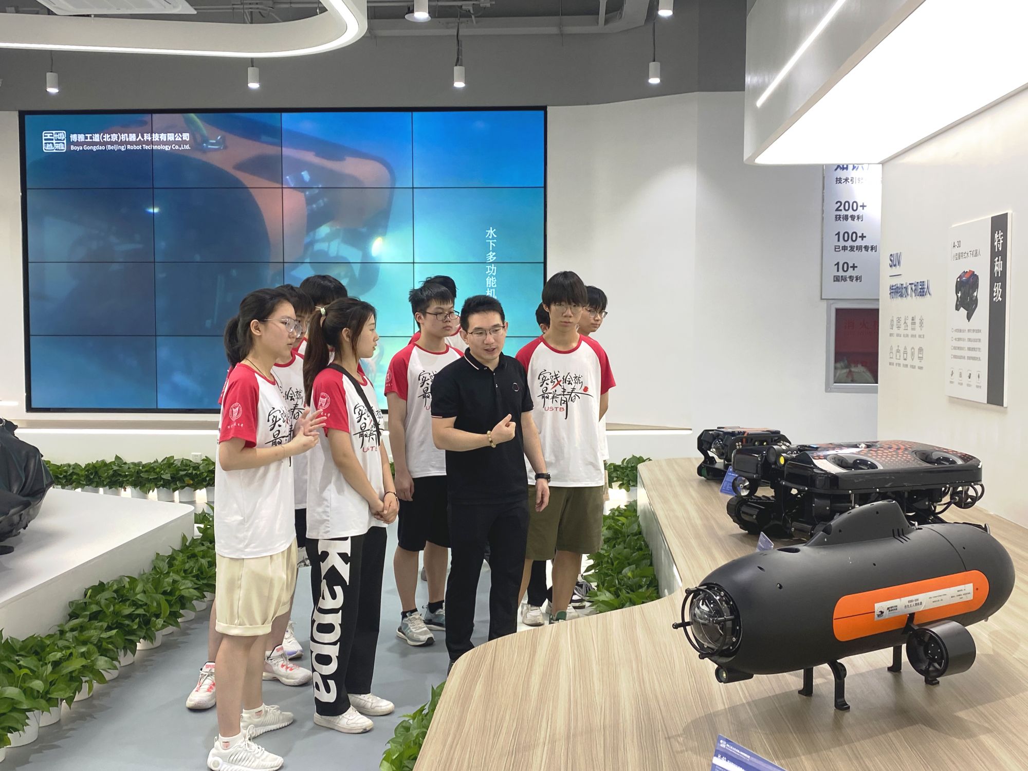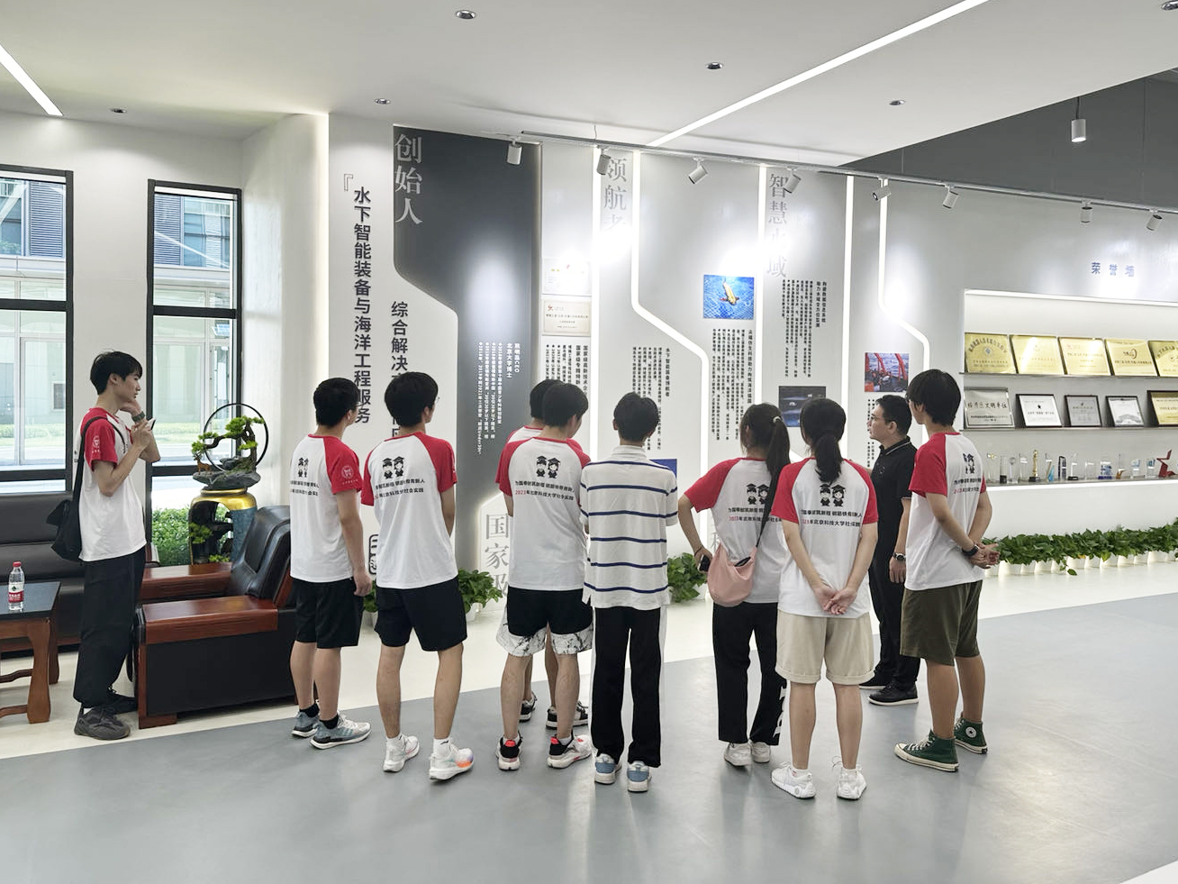 7月25日,北京科技大學暑期社會實踐團來到博雅工道北京公司進行參觀交流?;顒娱_始,我公司的市場部負責人和人事行政總監帶領大家進入展廳,向學生們簡要介紹了公司的發展歷程,回顧了我們在水下機器人領域的成長和取得的成就。