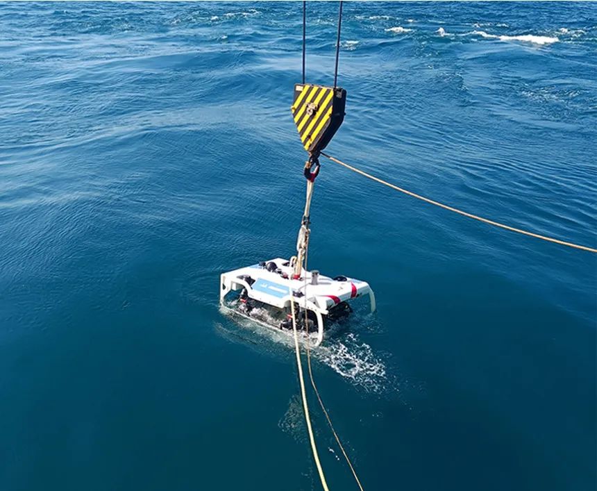 次日清晨,技術人員攜帶工程服務隊員和R-150水下機器人抵達碼頭,準備開始進行水下搜尋任務。水下機器人R-150表現出色,入水僅25分鐘后便成功搜尋到了第一臺實驗設備。上午12時,第一臺設備的回收工作順利完成。