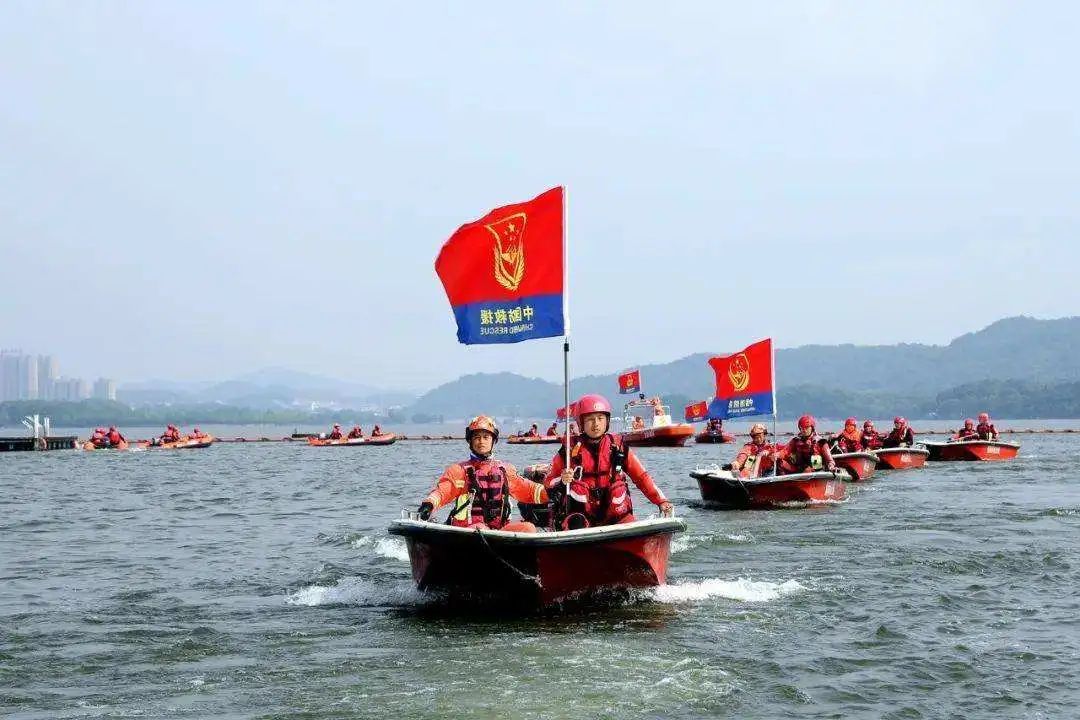 進(jìn)行水域救援演練的消防救援隊(duì)