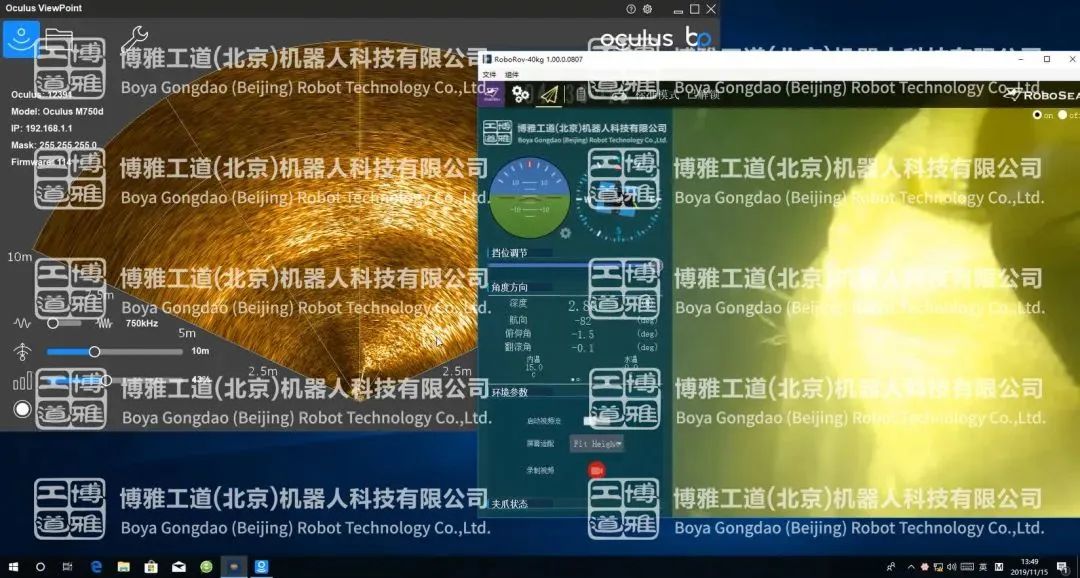 水下救援機(jī)器人 R1-45 搭載的攝像頭和聲吶采集到的現(xiàn)場(chǎng)圖像