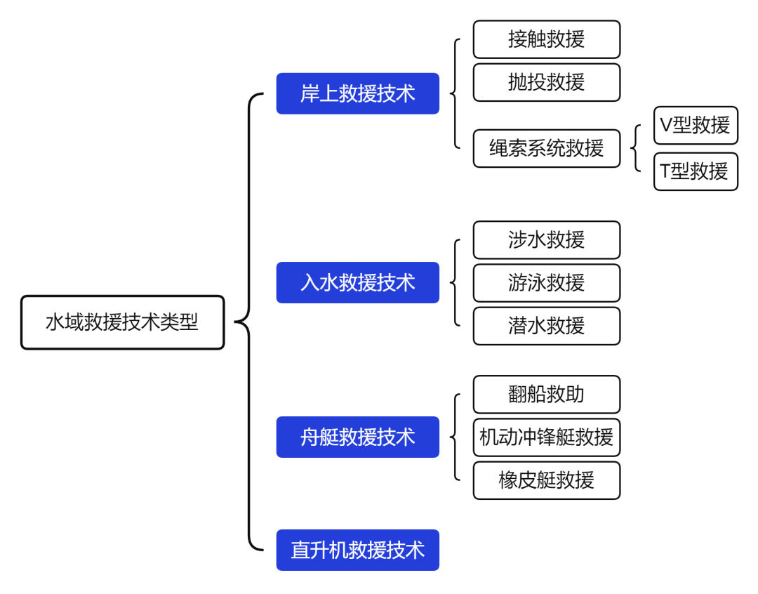 《水域救援作業(yè)指南》作為我國(guó)首部指導(dǎo)水域事故處置的行業(yè)標(biāo)準(zhǔn),給救援隊(duì)伍的建設(shè)提供了有力的參考,對(duì)現(xiàn)場(chǎng)管理、人員裝備和行動(dòng)方案都提出了要求。《指南》中還明確了水域救援適用的 5 項(xiàng)災(zāi)害事故類別,包括:內(nèi)河湖泊船舶擱淺翻沉事故;車輛、列車、飛行器等交通工具墜水事故;洪澇災(zāi)害;落水遇險(xiǎn)事件以及孤島遇險(xiǎn)事件。相應(yīng)的,針對(duì)不同災(zāi)害事故類型,通過(guò)分析借鑒了國(guó)外專業(yè)救援認(rèn)證機(jī)構(gòu)的經(jīng)驗(yàn),列出了 10 類水域救援技術(shù)類型。