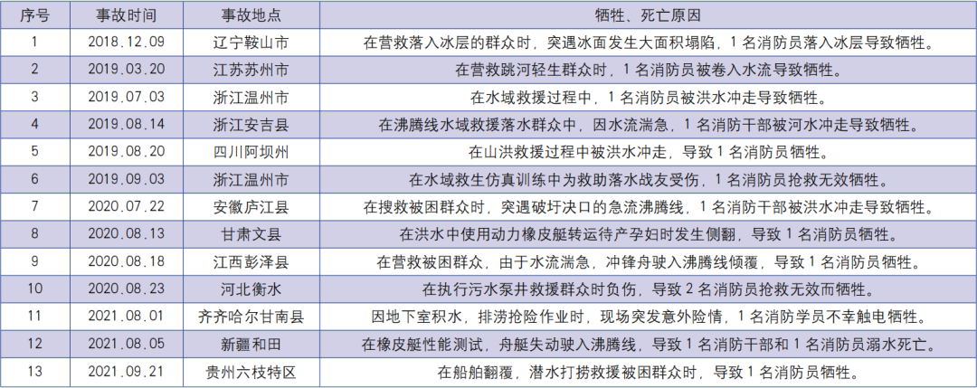2018 年—2021 年消防隊(duì)伍水域救援傷亡情況統(tǒng)計(jì)