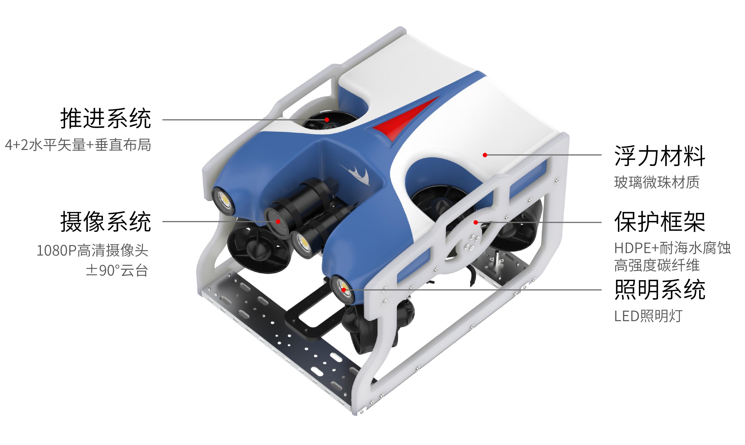R-30是一款針對較復雜作業場景升級設計的中型觀測級水下機器人產品,獨特的外形優化使其在水下受到更小的阻力,在水下動作更加靈活可控,新增的圖像增強和目標物識別技術使其成為實現水下觀測的不二之選。